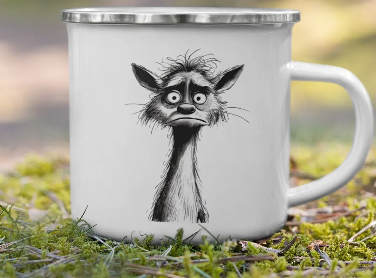 Adorable Grumpy Creature Enamel Mug – Funny Cartoon Animal Cup