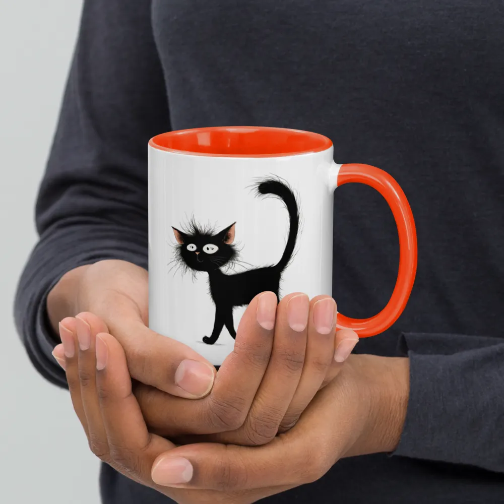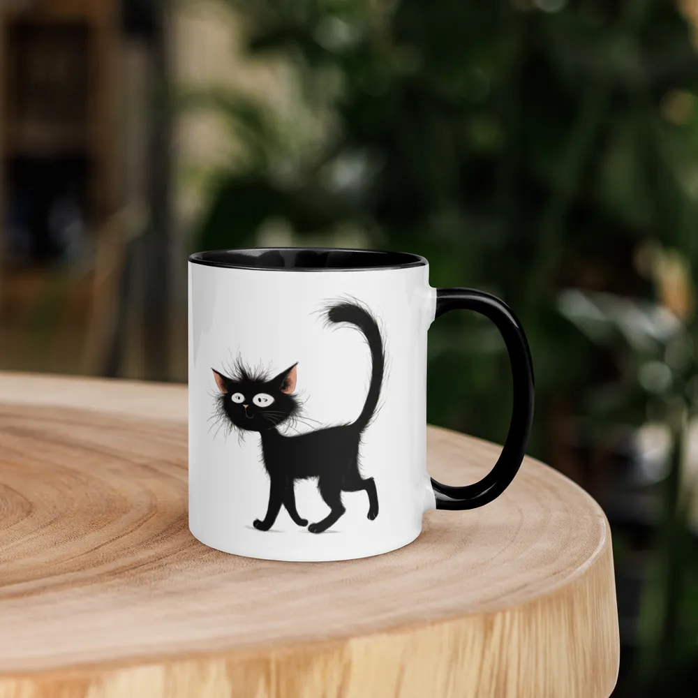 🐈⬛ Enjoy your favorite drink with this charming white ceramic mug, featuring a playful black cat illustration. Glossy finish with a colored handle and interior makes it perfect for coffee, tea, or cocoa. A delightful gift for cat lovers on birthdays, Mother’s Day, or Father’s Day.